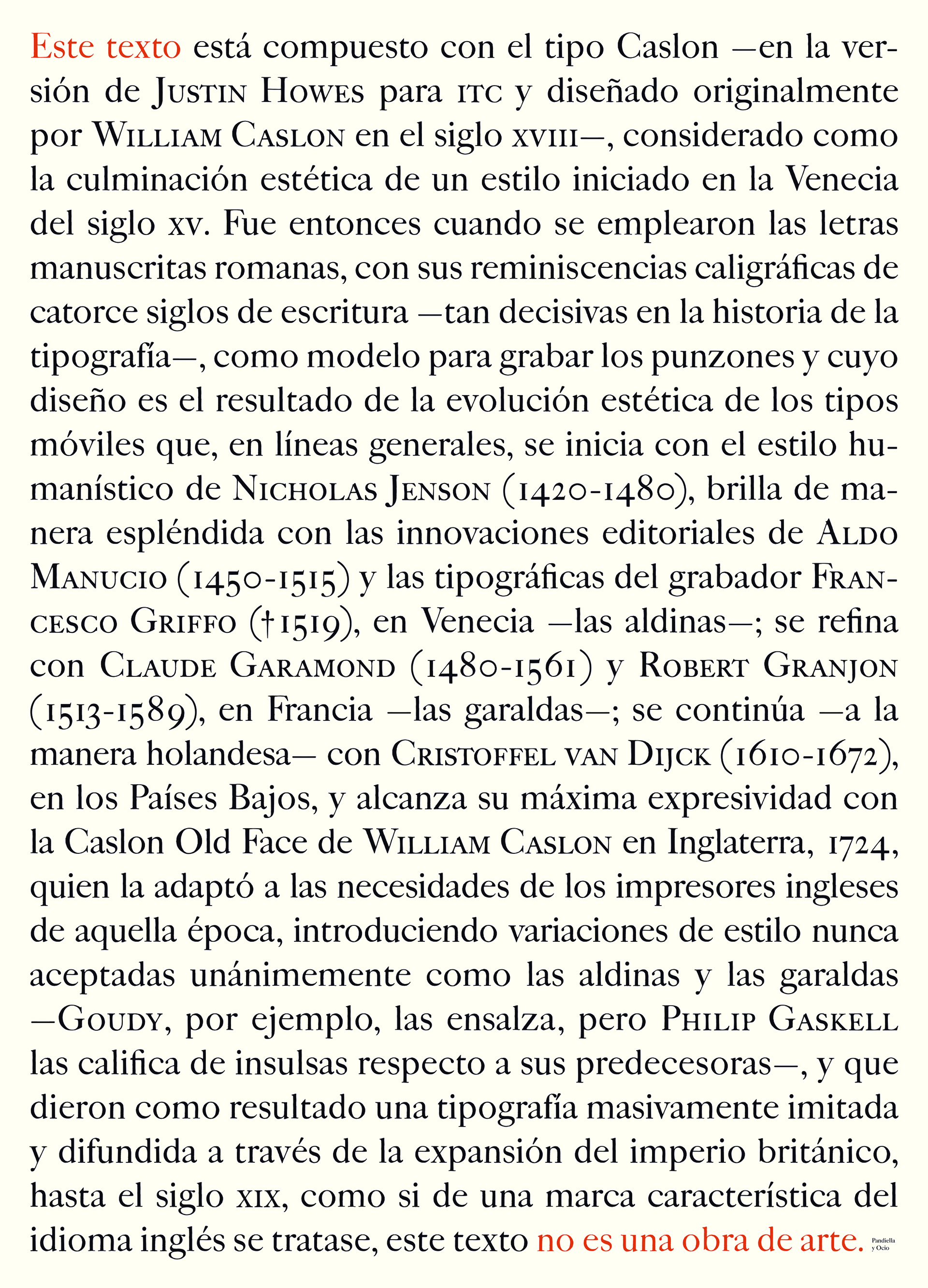 «En la obra que presentamos a esta exposición hemos considerado oportuno utilizar como referencia —somos conscientes que de manera poco original, pues ya ha sido utilizado más veces en eventos parecidos que trataron acerca de los lenguajes artísticos— el célebre título Ceci n‘est pas une pipe de un cuadro de René Magritte, por considerar que cuando mostramos alguna pieza de diseño, en nuestro caso tipográfica —tan fundamental en el diseño gráfico—, atendiendo exclusivamente a sus aspectos formales y estéticos, como si de una obra de arte se tratase, la despojamos de su función, la convertimos en pura representación y, por tanto, deja de ser diseño».