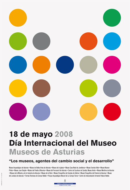 Los círculos de colores podrían sugerir las diferentes colecciones artísticas, científicas y de cualquier tipo que cada museo alberga. En la gran variedad de museos que existen se «conservan» partes materiales de las actividades culturales humanas con la misma función: mostrarlas al público para que se contemplen o examinen. La «M» es inicial de la palabra Museo en todos los idiomas de nuestra órbita cultural. En Asturias hay diecinueve museos. No sabíamos que había tantos. Feliz coincidencia. Con diecinueve círculos formamos la «M». Qué fácil.