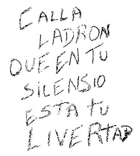 Nada que ver con los graffitis que vemos cotidianamente. Los que se citan y muestran en este capítulo del libro Letras bajo sospecha carecen de la vistosidad, destreza y hermetismo de los callejeros de nuestras ciudades, los graffitis que podemos ver en libertad y con cuyas imágenes se hacen libros, revistas, se cuelgan en Internet para consumo de sus adeptos, o para interés de artistas, diseñadores y gente curiosa de eso que se denomina cultura visual.