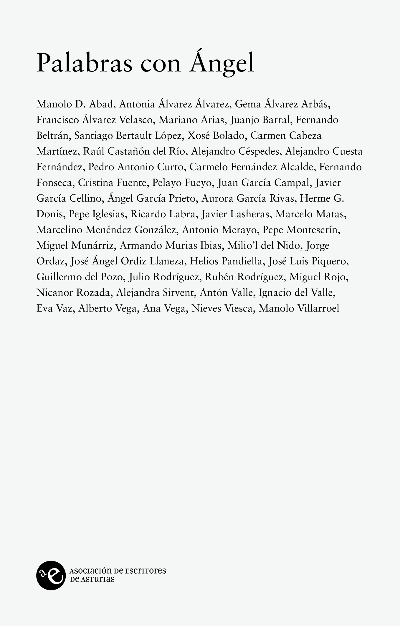 «Toda evocación del pasado es una fabulación, una ordenación interesada de los diversos materiales que se han ido sedimentando en las orillas del largo y, en la mayoría de los casos, sinuoso río de la experiencia. Cuando hablo de Ángel me asalta la impresión de que confundo el día de ayer con el del año pasado, que, además, es muy parecido al día de hoy (como puede comprobarse fácilmente). Los recuerdos de Ángel se me mezclan con los días sin Ángel, en una proporción confusa para la memoria. A veces tengo la sensación de estar viviendo unas copas por el Oviedo antiguo en su cálida compañía y de demorarme con él, sin prisa alguna en nuestros relojes, por la calle San Francisco, hasta que se apagan las últimas farolas, lo que solemos hacer con bastante frecuencia. Luego, a la hora de la despedida, me doy cuenta de mi error, de que tan sólo estaba transitando por un libro suyo, mientras —eso sí— se apagaban las últimas farolas por las calles de La Felguera. Ésta es una de las magias de la literatura, también uno de sus sobresaltos. Y es que Ángel siempre se me escapa por las esquinas del calendario, hasta que por el callejón de cualquier mes vuelve a aparecer con su sonrisa radiante y su voz de buen amigo.