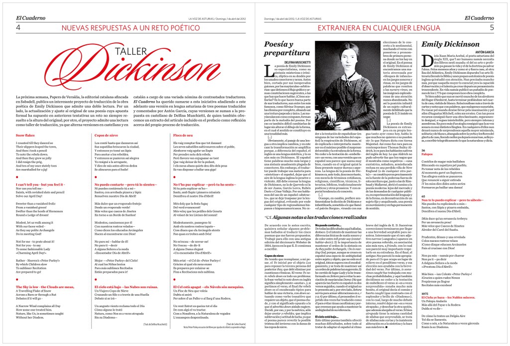 En este número 24 de El Cuaderno, suplemento del periódico La voz de Asturias: «El número hecho Carne. Un homenaje a Amador (1926-2001)»; «Taller Dickinson», dedicado a la poesía de Emily Dickinson. Y críticas de los libros Gottland, de Marius Szczygieł; El origen del mundo, de Pierre Michon; Averno, de Louise Glück; Canción de Vic Morrow, de Jaime Rodríguez Z. y El libro de Monelle, de Marcel Schwob. En la última página, una imagen de un cuadro de Chechu Álava.
