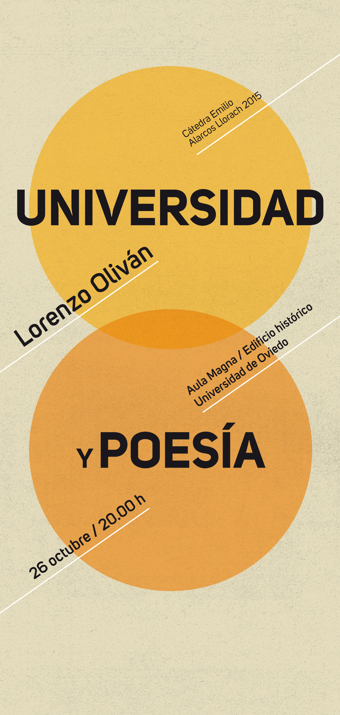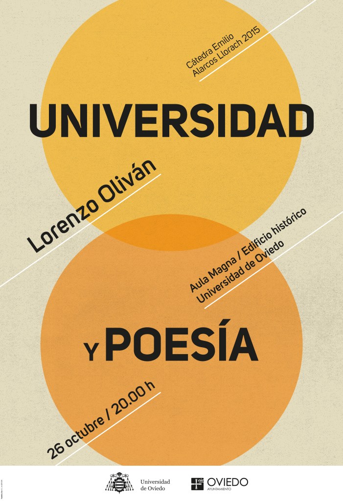 El próximo lunes, 26 de octubre, a las ocho de la tarde, en el Aula Magna de la Universidad de Oviedo (Edifico Histórico), el poeta Lorenzo Oliván pronunciará una conferencia sobre Universidad y poesía con motivo de la publicación del libro Homenaje a los poetas de la Cátedra Emilio Alarcos.