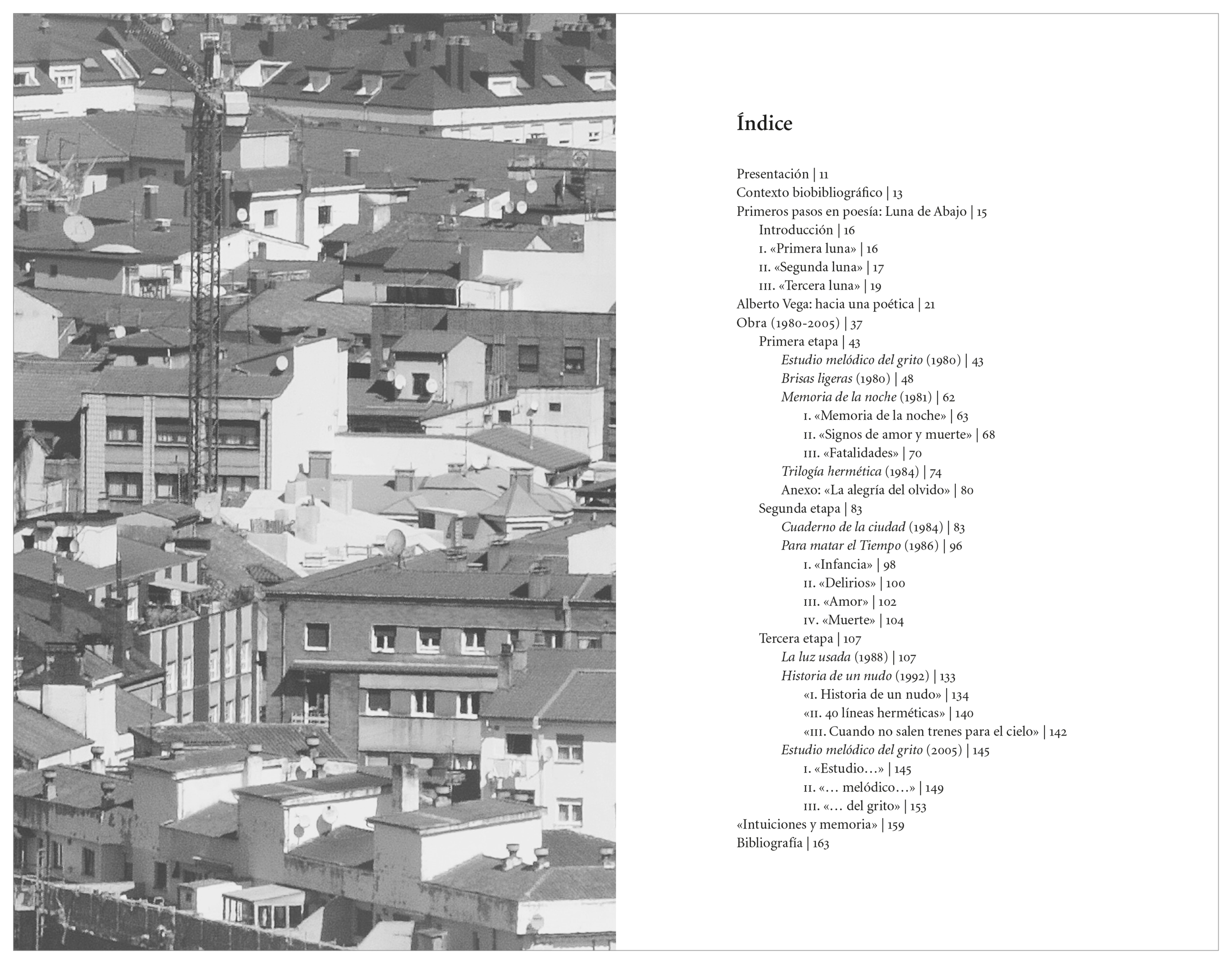 El presente libro tiene por objeto el estudio de la obra del poeta asturiano Alberto Vega (1956-2005), cuya trayectoria literaria se enmarca dentro de la que conocemos como «generación de los ochenta», heredera de la corriente experiencial de los años sesenta del pasado siglo xx. Sin embargo, no es nuestro propósito hacer un estudio generacional y encorsetar sus versos dentro de unas coordenadas determinadas, sino analizar el hecho poético de Vega en sí mismo y recuperar la figura de un poeta fascinado por la cotidianidad y el desencanto al que sus circunstancias han reducido al ámbito local.