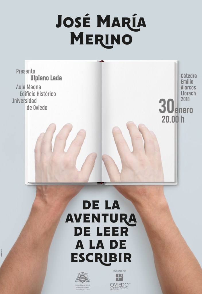 Conferencia programada por la Cátedra Emilio Alarcos Llorach titulada De la aventura de leer a la aventura de escribir e impartida por José María Merino, escritor y académico de la RAE, el 30 de enero de 2018