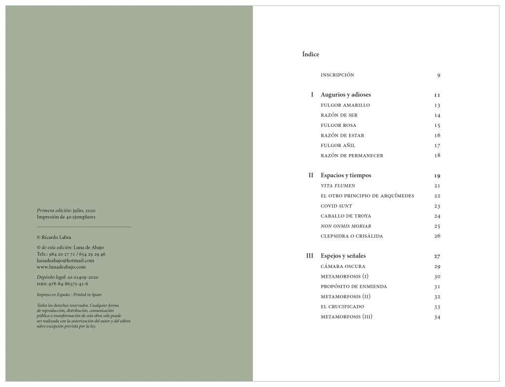 La sensación generalizada de parálisis que extendió la COVID-19, tanto personal como social, con la recurrente percepción metafórica de que nuestro convencional mundo se hubiese detenido, me obligó a ponerme en movimiento y a aceptar el compromiso de escribir unos poemas de encargo, con tema definido, sobre algunos de los numerosos interrogantes con los que esta pandemia acechaba —todavía lo hace— los límites de nuestra cotidianeidad. No sé si en días futuros volveremos a ser los de antes, o si aprovecharemos las enseñanzas que ha propiciado su fatalidad para no incurrir en las andadas de entonces. La COVID-19 es como la calavera de Jorick, su propagación no solo nos interpela personalmente sobre nuestros miedos, anhelos y percepciones temporales, sino que sus dilemas también ponen en cuestión el sistema de vigencias y valores que modelan nuestros actos.
